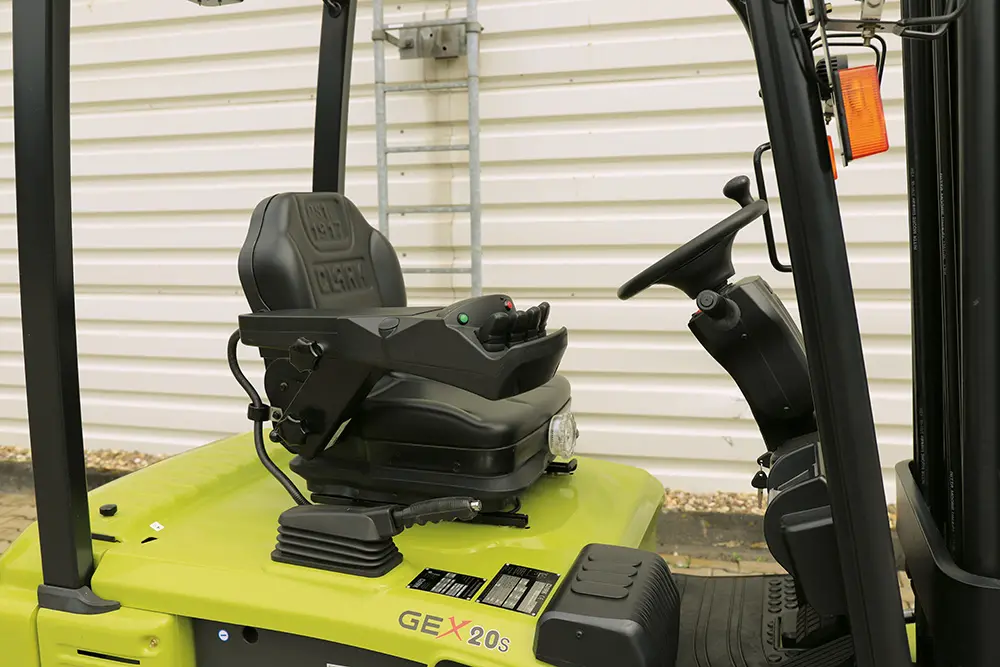 The truck can be operated either via adjustable mini-levers integrated in the armrest or via ergonomically arranged hydraulic levers on the hood of the truck. The drive direction can be changed via the steering column, a switch in the armrest, or via a dual pedal.