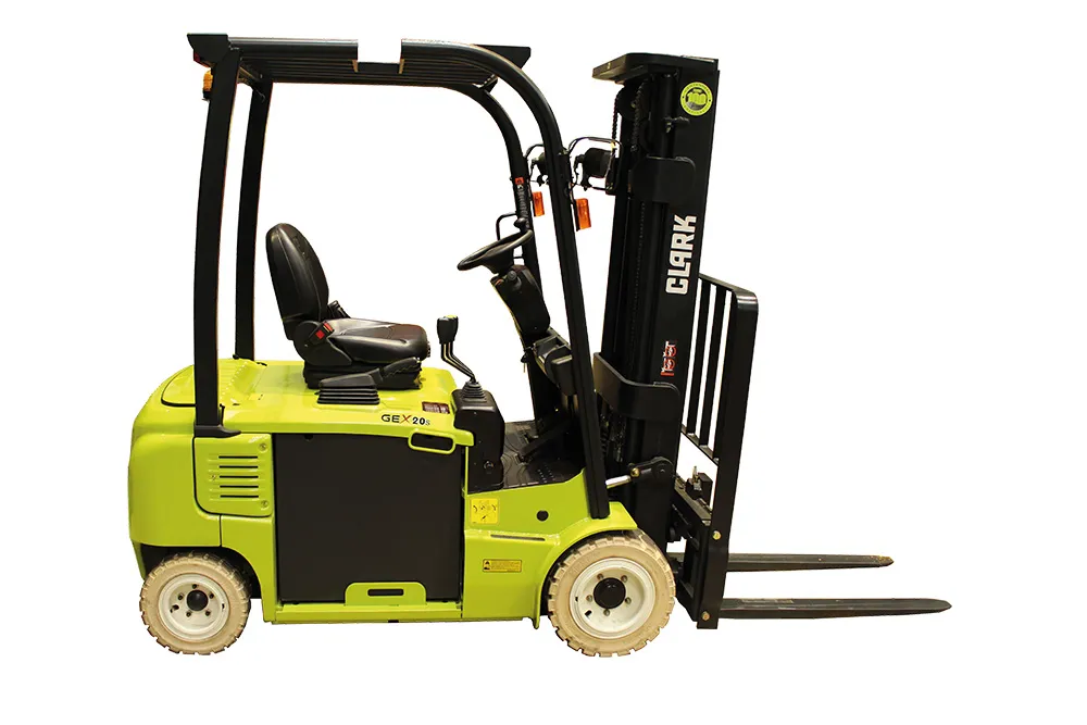 Electric three-wheel forklift Superelastic tyresCapacity: 1600 – 2000 kg @ 500 mm LC GTX16/18/20s Manoeuvrable power house ensures high performance with low operating costs With the CLARK electric three-wheel forklifts GTX in 48 Volt technology, you can move your loads in a safe and efficient way at extremely low operating costs. The CLARK electric forklifts…